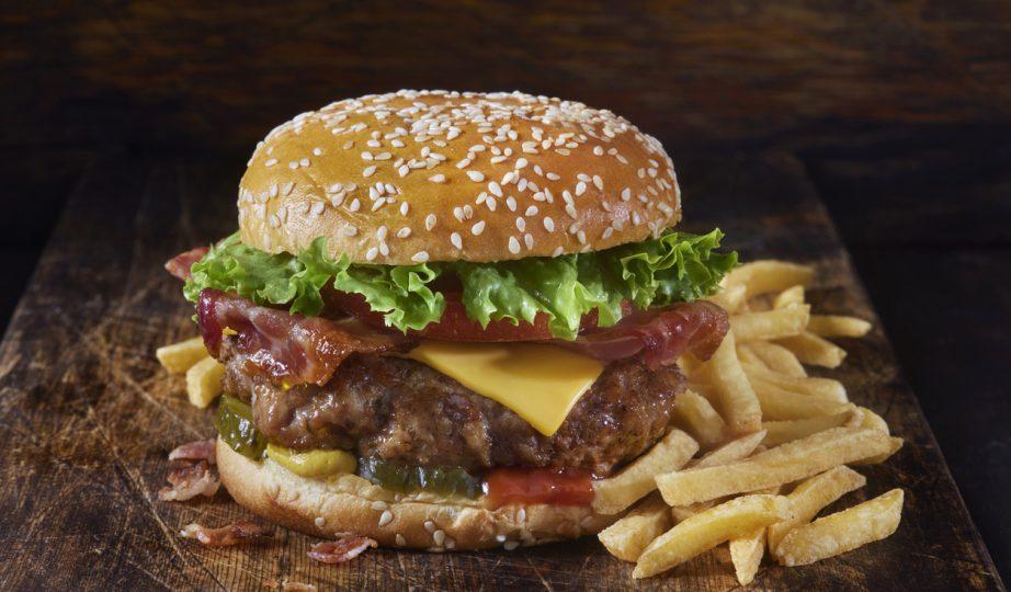 Full breakfast menu (all-day breakfast), deli sandwiches, burgers, wraps, salads, soups, and comfort entrées.